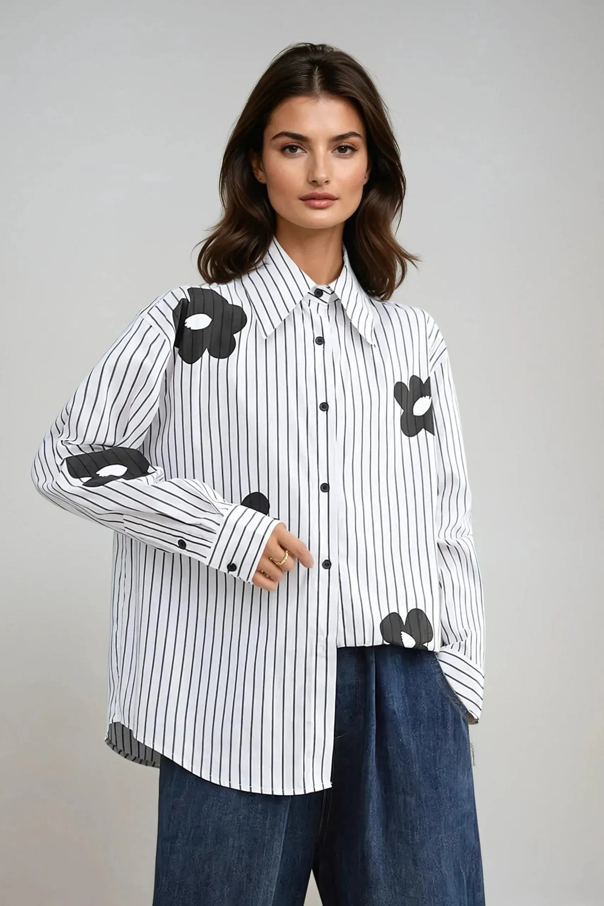 A timeless classic with a contemporary twist, the Harper Shirt is designed for those who appreciate effortless sophistication. With its structured silhouette, playful floral details, and crisp design, this shirt is perfect for elevating everyday style.